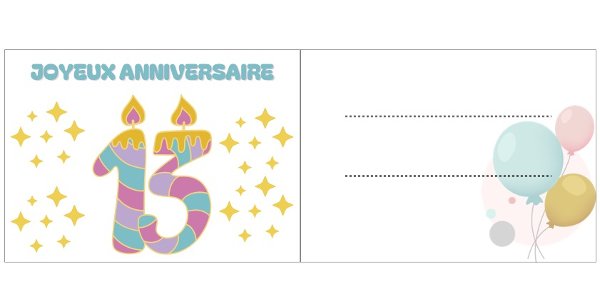 Belles Cartes Anniversaire Fille 13 ans à imprimer