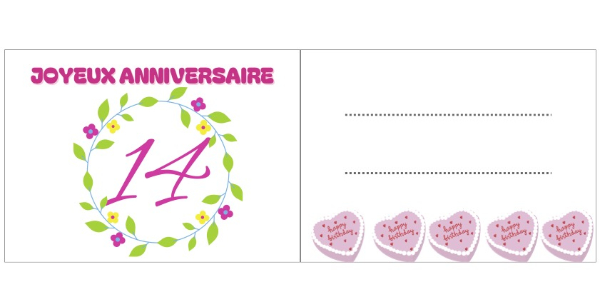 Belles Cartes Anniversaire Fille 14 ans à imprimer