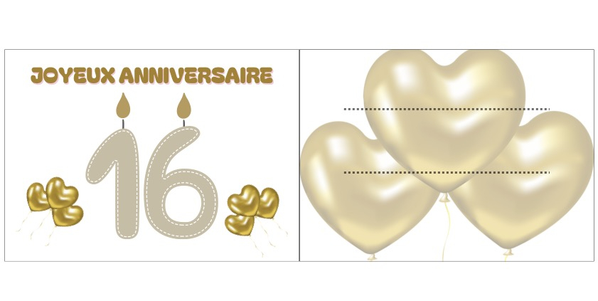 Belles Cartes Anniversaire Fille 16 ans à imprimer
