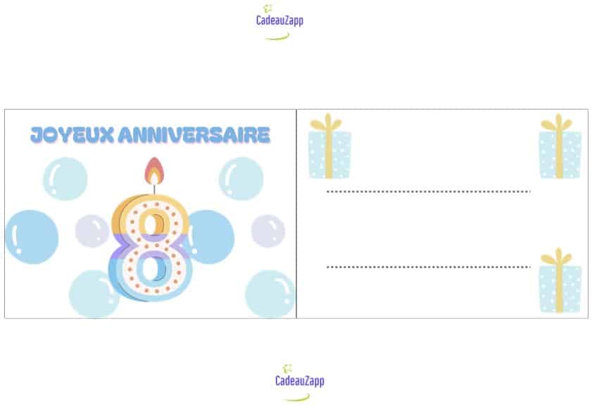 Belles Cartes Anniversaire Garçon 8 ans à imprimer