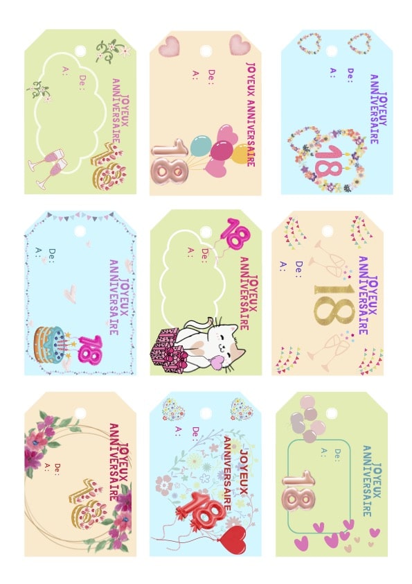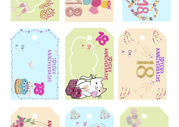 Belles étiquettes Anniversaire fille 18 ans à imprimer