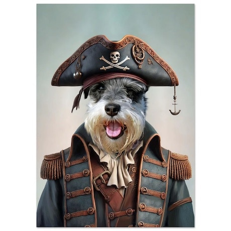 Pour un fan de Pirates des Caraïbes, offrez un portrait personnalisé de son animal de compagnie en intrépide pirate. Ce poster audacieux transforme son compagnon en capitaine des mers, prêt à naviguer sur les flots à la recherche de trésors. Un cadeau unique qui capture l’esprit d’aventure et l’amour des animaux !